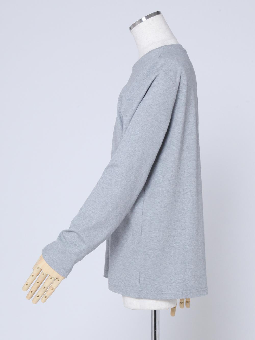 コットン,プルオーバー,長袖,ミドル丈,無地,衿無し,クルーネック